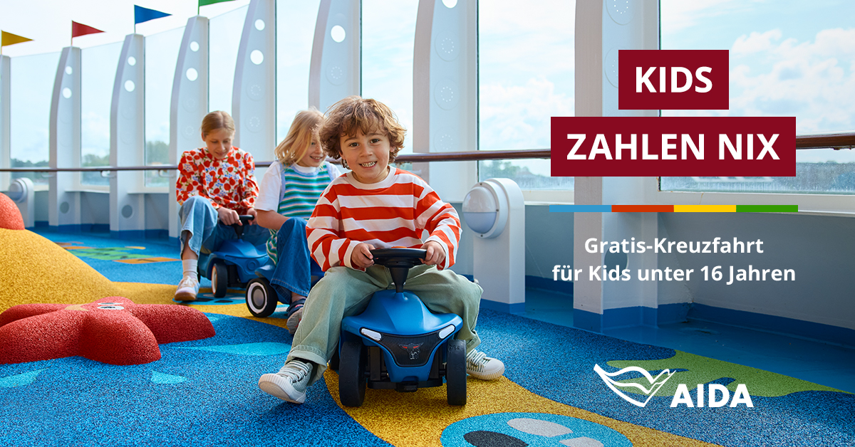 Bei Buchung bis 5. November zahlen Kids unter 16 Jahren für die Kreuzfahrt nix und sparen zusätzlich 20 % auf ausgewählte Flüge.