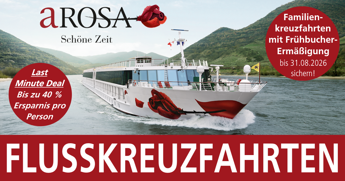 A-ROSA Familienkreuzfahrten zum Frühbucherpreis bis 31.08.2026!